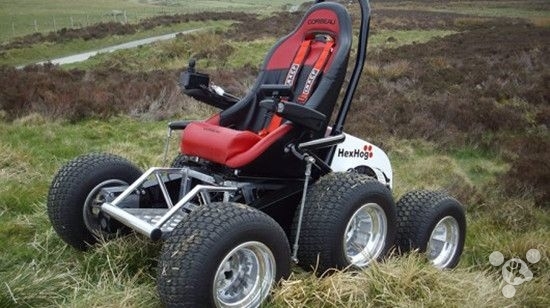 經(jīng)過(guò)五年的研發(fā)與崎嶇的山路測(cè)試,HexHog終于合法歸入ATV(全地形車(chē))行列,打破了傳統(tǒng)電動(dòng)輪椅概念。Pierce稱(chēng):“雖然不能把HexHog開(kāi)進(jìn)超市,但你完全可以開(kāi)著它跨越荒野、農(nóng)田甚至是泥炭沼澤。”如果購(gòu)買(mǎi)了額外的設(shè)備,你可以開(kāi)著它像汽車(chē)一樣在英國(guó)公路馳騁,當(dāng)然前提是你有一個(gè)標(biāo)準(zhǔn)的汽車(chē)執(zhí)照。