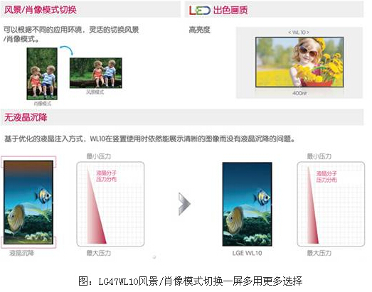 作為全球商用顯示領域領導品牌LG電子,秉承專業、創新的品牌理念,憑借對行業應用的充分了解和深度洞察,LG47WL10融合了全高清、高亮度、綠色環保、配備溫度傳感器和ISM殘像防止功能、風景/肖像模式切換自如,兼具使用壽命長、呈現效果穩定、維護費用低、視覺效果好等諸多優點,全面迎合市場及客戶對環保節能、降低使用成本和提高使用便利性的需求。未來,LG必將推出更多更好的商用顯示產品及配套解決方案,為諸多行業提供完美的顯示解決方案。