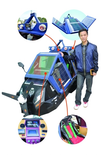這輛車,陸新田融入了殲擊機(jī)和直升機(jī)的設(shè)計(jì)理念。陸新田是英語老師出身,后來自己開了一個機(jī)械小加工廠,從來沒有做過汽車方面的研究,這輛車子他研究了300多款國外的綠色環(huán)保車,幾乎天天晚上都要加班,有時(shí)候,為了一個小細(xì)節(jié),自己整晚都在研究。