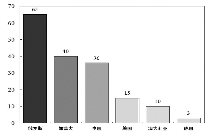 部分國家煤層氣資源對比圖(單位:萬億立方米)