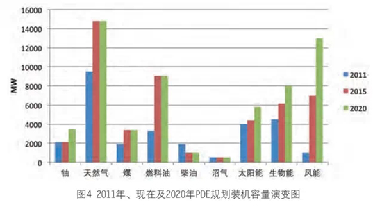 從圖4可見,到2020年風電裝機要達到1300萬千瓦,占巴西能源總量的7.6%。