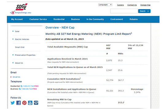 凈計量電價裝機容量上限(圖:SDG&E)