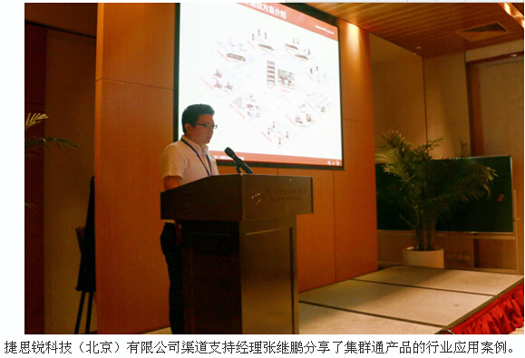 捷思銳科技(北京)有限公司總裁溫斌先生為大會致辭。溫總認為,在移動互聯網浪潮和“互聯網+”概念推動下,以及移動互聯網和通信技術融合的快速發展,更多傳統企業開始積極擁抱移動互聯網。溫總向大家展示了“互聯網+對講機”的新時代下,捷思銳的集群通運營平臺產品及愿景,打造電信級業務平臺、一體化運營服務、良性的產業鏈,以構建新的產業格局。