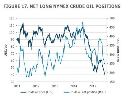 澳新銀行的下圖顯示,NYMEX的原油投資做空倉(cāng)位近月來不斷攀升。
