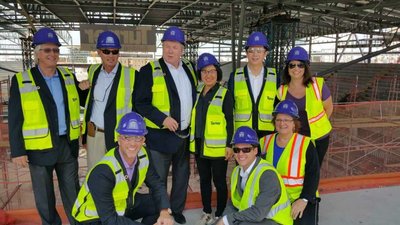 SPI綠能寶CEO葉得軍(后排右2)、CFO劉菁(后排右3)與SPI綠能寶CSO Steve Kircker(后排左3)參觀正在建設(shè)的“黃金1號中心”
