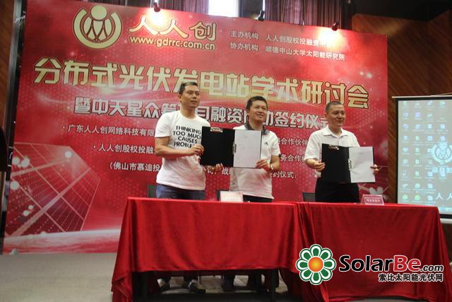 借助全國(guó)首個(gè)眾籌分布式光伏發(fā)電站項(xiàng)目——“中天星工廠式光伏發(fā)電站項(xiàng)目”融資成功的契機(jī),成功舉辦了“[人人創(chuàng)]分布式光伏發(fā)電站學(xué)術(shù)研討會(huì)暨中天星眾籌項(xiàng)目融資成功簽約儀式”。