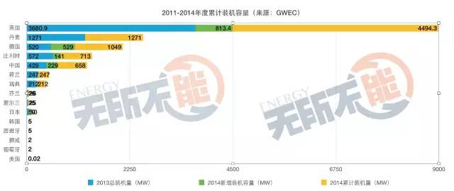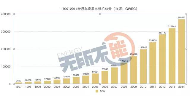 8.1997~2014世界年度風(fēng)電裝機量