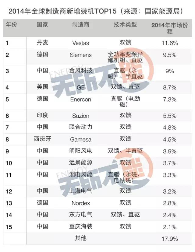 10.2014年全球制造商新增裝機TOP15