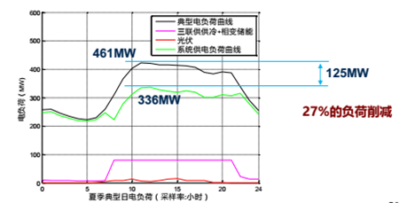 舉個能源協同發展的例子,比如說傳統的能源局域網在規劃設計時往往事先從整個負荷需求來考慮,我們傳統方式最高負荷值是461,如果平時就要按照461的值來設計。但是考慮到本地的分布式能源發電,儲能等,就可以考慮到在運行時是336,這樣降低了27%的負荷,這樣各種成本都會下降。另外通過這個技術和一些互聯網技術,使一些變電站從七座減少到六座,這不僅是減少成本的問題,占地還可以減少其他的用途,包括商業樓宇等。