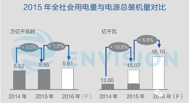 根據中電聯的預測,2016年全社會用電量增速約1%-2%,電力裝機量增速約6.5%,新增裝機增速遠超過用電需求增速的現狀短期內不會改變,可再生能源的限電問題仍然是一大挑戰。