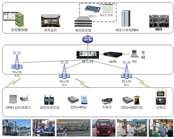 企業(yè)的安全生產,一方面需要對參與生產的人進行監(jiān)控,保證人員操作的規(guī)范性,另一方面需要對設備進行監(jiān)管,實時掌握設備的運行狀態(tài),發(fā)現安全隱患、降低危險水平。然而在實際生產管理中,實現安全生產監(jiān)管存在種種困難:首先由于生產環(huán)境的特殊性,如果在危險區(qū)域內進行挖溝、接線的操作可能產生火花,容易引發(fā)安全事故,因此通過挖溝鋪設電纜或橋架接線收到限制,導致類似儲罐儲備、溢流或泄露情況以及流量和能耗計量等需要實時監(jiān)控的數據無法及時上傳;其次,在煉化企業(yè)現有的數字對講系統(tǒng),只能進行語音呼叫,無法靈活而直觀地獲取各區(qū)域視頻信息,調度人員無法實時了解現場人員情況,難以及時準確地制定應急調度方案;此外,煉化企業(yè)生產區(qū)域內車輛往來頻繁,因為缺乏有效的手段對廠區(qū)內車輛位置信息進行實時獲取,而無法監(jiān)管廠區(qū)內車輛行程……這些問題,都成為煉化企業(yè)安全生產管理中亟待解決的問題。