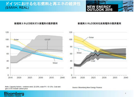 結(jié)果是,歐洲預(yù)計2040年可再生能源在整體發(fā)電量中將占70%左右(2015年約為32%)。美國方面,2040年可再生能源將由2015年的14%增至44%,而天然氣火力發(fā)電將由33%減至31%,可再生能源的比例將超過天然氣火力發(fā)電。