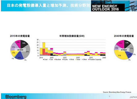 日本全部電源的發(fā)電容量,到2040年將由2015年的287GW增至413GW。