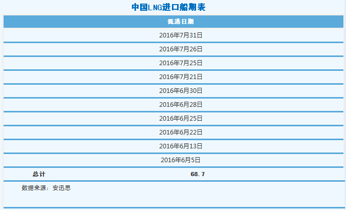 安迅思從華東某資深人士處了解到,現(xiàn)在華東市場上進口LNG一車難求,北方國產(chǎn)LNG價格仍在上漲,目前與進口LNG送到價格相差50-100元/噸左右,目前北氣流入量尚較小,但下游需求上漲或?qū)⑹沟孟掠斡脩舨坏貌患哟蟛少彵狈絿a(chǎn)LNG資源。該人士預(yù)計8月份華東地區(qū)LNG價格漲幅約在100-200元/噸。