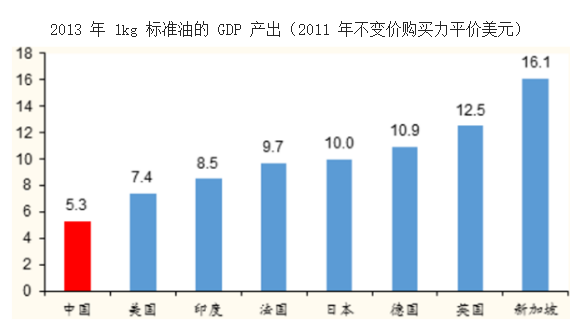 環境與能效治理提供天然氣發展的歷史機遇。空氣污染、能源效率等相關 問題日漸突出是這種粗放式經濟增長模式的必然后果。我國能源利用技術 落后造成了能源效率明顯偏低,2013 年中國單位能耗的 GDP 產出為 5.3 美元,僅為法國、日本、德國等發達國家的二分之一左右。另一方面,能 源消費絕對量的大幅增加和以煤炭為主的能源消費結構導致我國環境污染 日益加重。以大氣污染為例,2013 年全國平均霧霾天數 35.9 天,為 1961 年以來的峰值。對比美國和中國 PM2.5 水平最高的十座城市,美國空氣污 染最嚴重的城市-貝克斯菲爾德的日均 PM2.5 水平為 18.2,遠低于中國邢 臺的 155.2。因此,通過加強對原料、燃料的控制,加快推進以綠色和低 碳技術為標志的能源革命是我國改善生態環境的必然選擇。