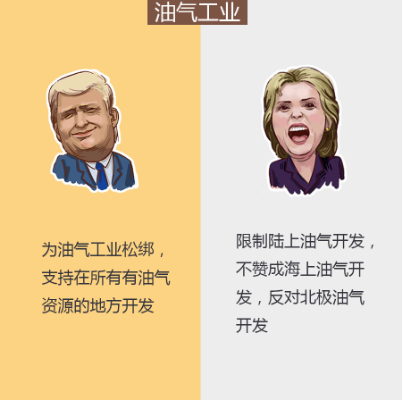 一致的是,兩者均表示認可低油價。希拉里提倡對頁巖油大力扶持,有利于低油價持續;特朗普曾把“將油價拉低”當成當選總統的首要任務。