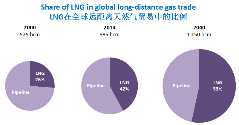 從天然氣領域來看,液化天然氣(LNG)推動了又一次天然氣革命。Tim Gould介紹,當前,天然氣市場轉型不斷加深,LNG在全球遠距離天然氣貿易中的占比也不斷提高,到2040年這一比例將達到53%。考慮到當前LNG市場供應已經充足,澳大利亞、美國及其他新LNG出口國的加入將給相關合同條款和價格機制帶來挑戰。