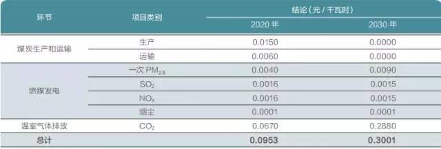 表:2020/2030年燃煤發電環境外部成本(單位:元/千瓦時)