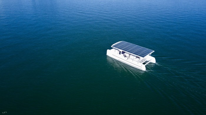 該太陽能電池陣列結合了兩塊60 kWh電池和兩臺30 kW電動機,最高航速為14節。設計師David Czap解釋說,這種推進系統是推動12米(39英尺)長的玻璃纖維船前行。