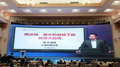 中國工程院院士,上海交通大學(xué)教授、博士生導(dǎo)師、副校長,中國民主促進(jìn)會(huì)中央副主席黃震以視頻方式發(fā)表演講,題目是《碳達(dá)峰碳中和目標(biāo)下的能源大趨勢》。